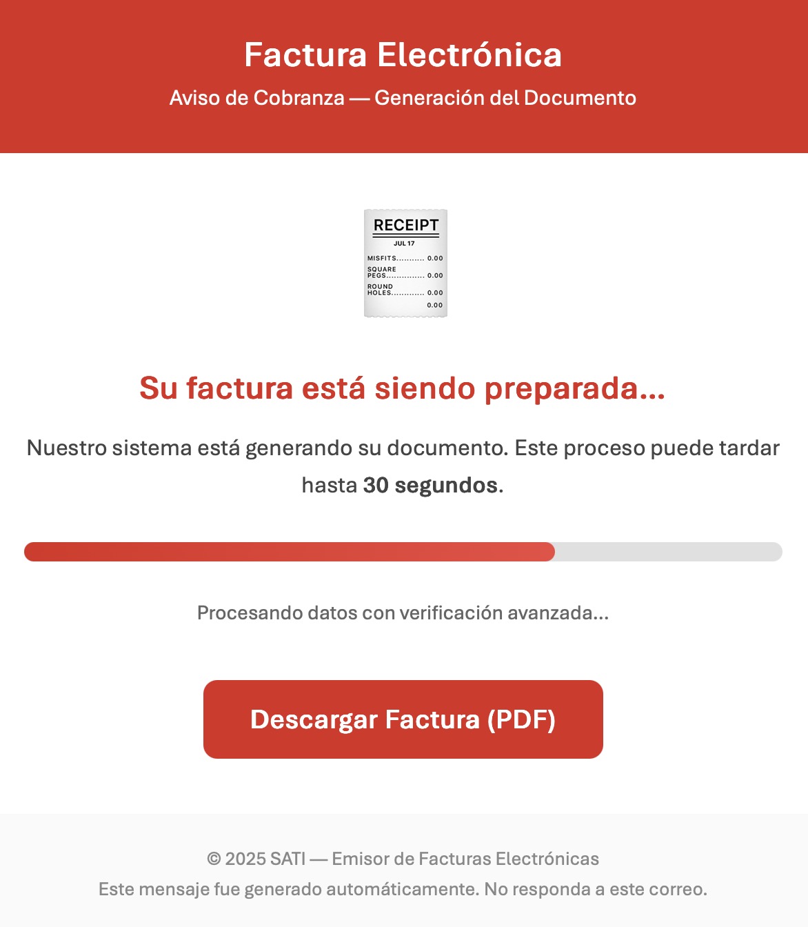 Hoy ha comenzado a circular un spoofing email de banco Santander. No abra el enlace. El banco no envía facturas en pdf vía email, es un virus. Se adjunta copia del correo que esta circulando.