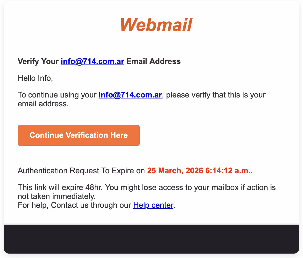 Hoy ha comenzado a circular un nuevo spoofing email. El webmail nunca le solicitará validar los datos. Son spoofing emails para robar sus credenciales de acceso.