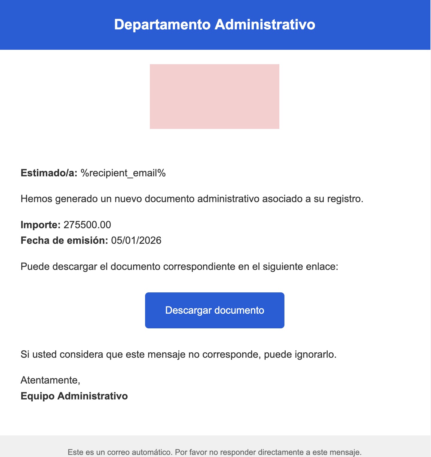 Hoy ha comenzado a circular un nuevo spoofing email para robar sus datos. El sistema nunca le enviará este tipo de correos.